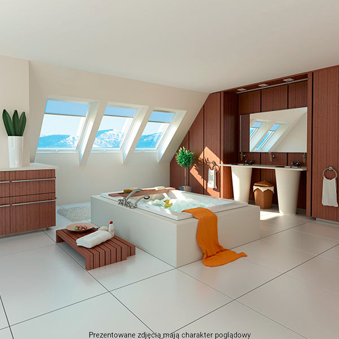 FAKRO GREENVIEW PTP-V U41 BBMX to wysokiej klasy okno dachowe obrotowe wykonane z trwałego PVC, stworzone z myślą o maksymalnej funkcjonalności, energooszczędności i nowoczesnej estetyce. Doskonale sprawdza się w pomieszczeniach o podwyższonej wilgotności – takich jak łazienki i kuchnie – dzięki odporności tworzywa na działanie wilgoci i łatwości utrzymania czystości.
