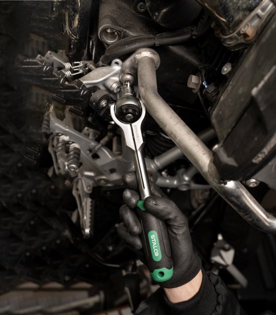 Stalco wprowadziło do swojej oferty nie tylko zestawy kluczy nasadowych, ale również akcesoria, które uzupełnią każdy warsztat i pomogą w naprawach. W ofercie znajdują się grzechotki odgięte, takie same jak te w zestawach kluczy nasadowych, z 72 zębami i wykonane z wysokogatunkowej stali CrV. Dodatkowo, wprowadzono grzechotki z powłoką kompozytową oraz teleskopowe, z 72 zębami. Aby ułatwić pracę majsterkowiczom, oferowane są również akcesoria takie jak bity, nasadki i przedłużki w kompletach, które zawierają najpopularniejsze indeksy znajdujące się również w zestawach kluczy nasadowych. To idealna oferta dla tych, którzy chcą uzupełnić swoje narzędzia o najpotrzebniejsze elementy i mieć pewność, że są one wykonane z najwyższej jakości materiałów.