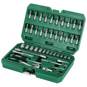 Zestaw S-54015 składa się z 48 elementów, w tym bitów na nasadkach i grzechotki w rozmiarze 1/4".