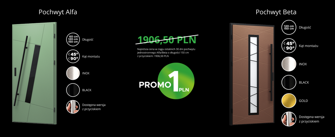 Pierwszym elementem, który można wybrać za jedyne 1 zł, są pochwyty Alfa i Beta. Te klasyczne, stylowe i funkcjonalne dodatki nie tylko nadają drzwiom eleganckiego wyglądu, ale również ułatwiają codzienne korzystanie z nich. Wykonane z wysokiej jakości materiałów, pochwyty Alfa i Beta gwarantują trwałość i niezawodność przez wiele lat. Dzięki nim otwieranie i zamykanie drzwi staje się jeszcze bardziej komfortowe.