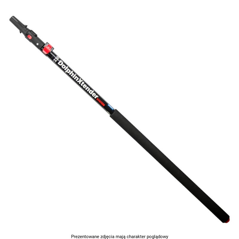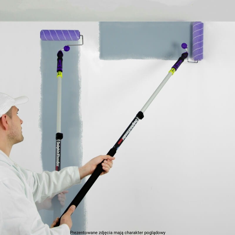 Malowanie to nie tylko uchwyt malarski i wałek malarski, ale również kij teleskopowy. Kij DolphinXtender System ma regulowaną długość w zakresie między 100 cm – 180 cm. Jego zaletą jest jakość wykonania, a jakość przejawia się przede wszystkim w niewielkiej wadze tego narzędzia, ponieważ wykonany jest z aluminium. Kij teleskopowy posiada ergonomiczną piankową rączkę, która zapewnia komfort i wygodę oraz system płynnego regulowania długości. Możemy go odblokować i ustawić dowolną długość. Dodatkową i bardzo ważną zaletą kija DolphinXtender jest również system mocowania uchwytu. Po nałożeniu uchwytu na kij mamy dodatkową blokadę, która powoduje, że uchwyt trzyma się bardzo stabilnie.