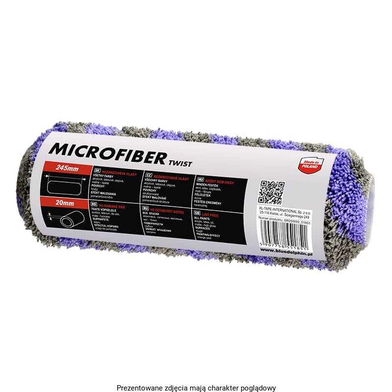 Blue Dolphin wałek Silver serii 330 to wałek malarski wykonany z innowacyjnego materiału, microfiber twist, który lepiej chłonie i oddaje farbę, a przy tym nie zostawia włosia. Jego zaletą jest też nieskomplikowane mocowanie. Nawet przy wielokrotnym użyciu zachowuje swoją pierwotną puszystość. Dzięki zastosowaniu skosów na końcach wałka, wyeliminowane jest nawarstwianie się farby na krawędziach.