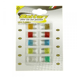 Bezpiecznik mini płaskie, topikowe. W zestawie znajduje się 10szt bezpieczników o różnych parametrach i kolorach. Bezpieczniki służą do przerwania obwodu elektrycznego, w którym płynący prąd przekracza w pewnym okresie dopuszczalną wartość.