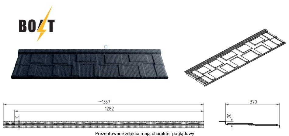 Pokrycie z kruszywem skalnym BOLT nawiązuje do bitumicznych pokryć dachowych jednak jej konstrukcja i forma połączona z wytrzymałością stali powleczonej obustronnie alucynkiem skutkuje odpornością na warunki atmosferyczne i ogień. Bolt jest dostępny w różnych kolorach, od głębokiego czarnego Onyx po różne barwy ziemi.