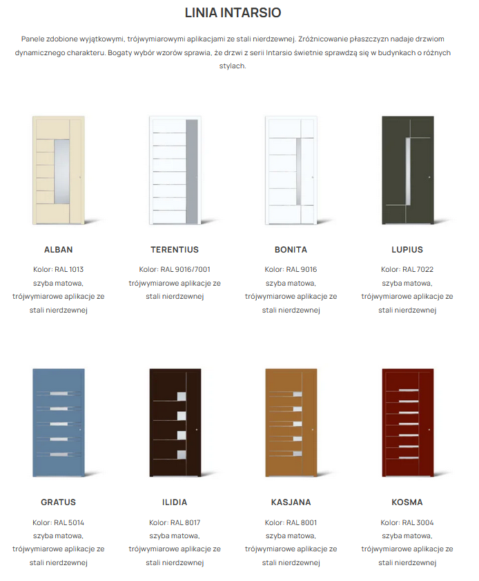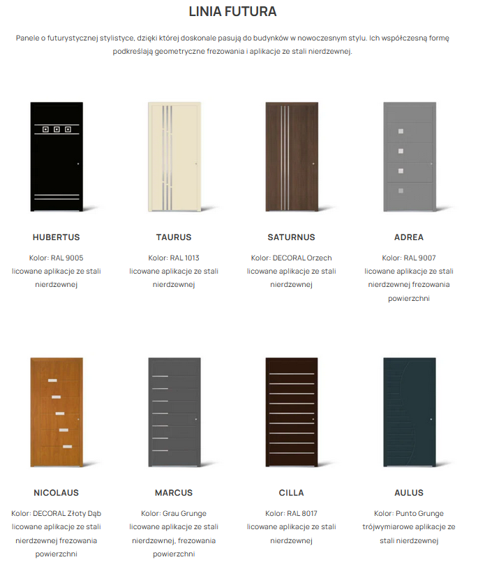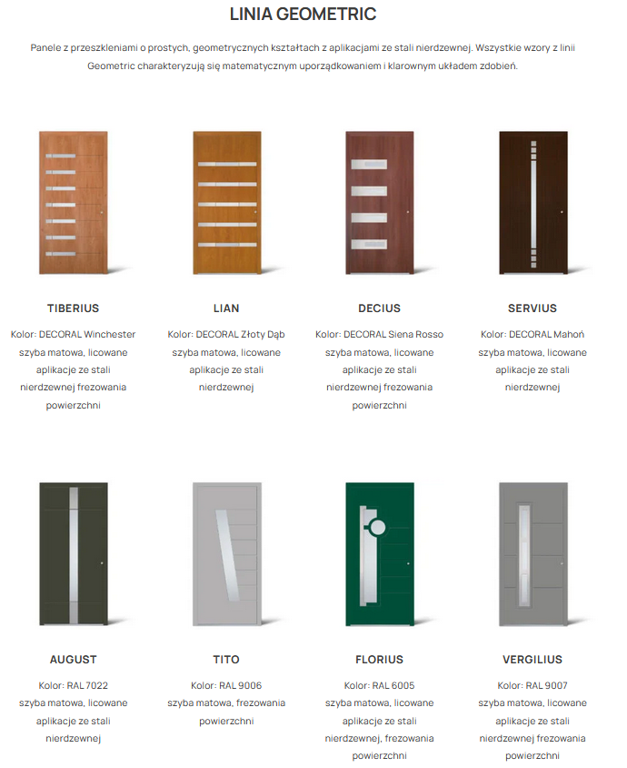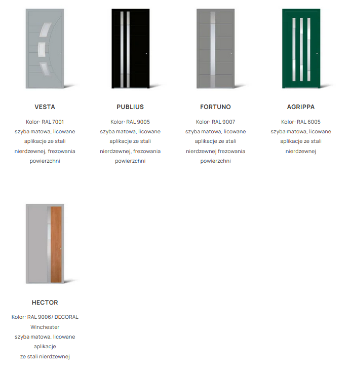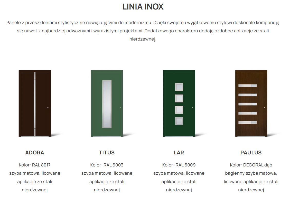 Linia Adora, Titus, Lar, Paulus i więcej – Rozmaite Warianty Kolorystyczne i Designu Każdy z wariantów, takich jak Adora, Titus, Lar czy Paulus, ma swój niepowtarzalny kształt, kolor oraz fakturę. Opcje kolorystyczne, matowe szyby i licowane aplikacje ze stali nierdzewnej tworzą bogatą paletę wyboru, dostosowaną do Twoich preferencji i estetyki Twojego domu.
