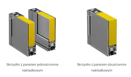 - Panel o grubości 76 mm lub 90 mm z dwóch blach aluminiowych o grubości 3 mm każda, wypełniony materiałem o wysokiej izolacyjności termicznej.