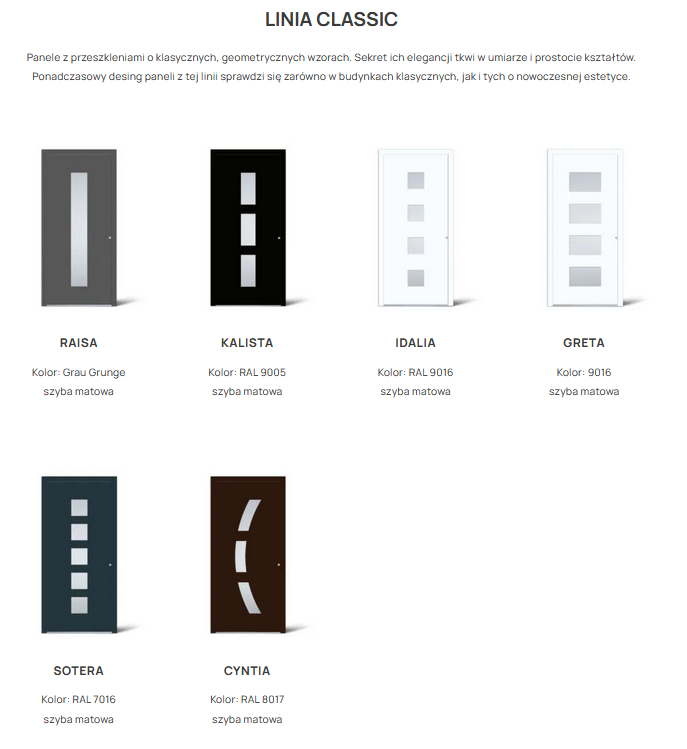 Linia CLASSIC Panele z przeszkleniami o klasycznych, geometrycznych wzorach. Prosta forma i umiar w stylu podkreślają ich elegancję.