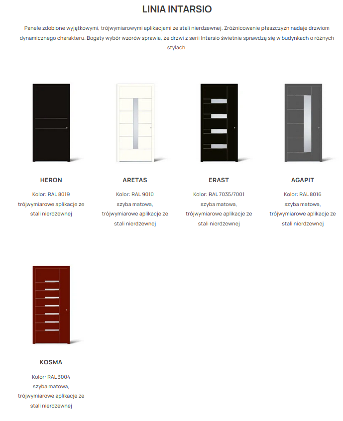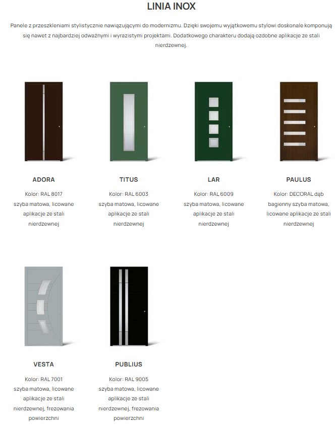 Linia INOX Panele z przeszkleniami w stylu modernistycznym, które doskonale współgrają z nowoczesnymi projektami. Dodatkowe ozdobne aplikacje ze stali nierdzewnej nadają im wyjątkowego charakteru.