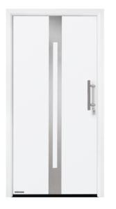 Solidność w Oszczędnej Formie Stalowe drzwi wejściowe Thermo65 są wyposażone w płytę drzwiową o grubości 65 mm oraz zakryty profil skrzydła wykonany z kompozytu. Izolowana termicznie aluminiowa ościeżnica wraz z tymi elementami tworzą spójną konstrukcję. Dzięki takiemu połączeniu, współczynnik izolacyjności cieplnej UD może osiągnąć nawet ok. 0,87 W/(m²•K), co przekłada się na efektywność energetyczną Twojego domu.