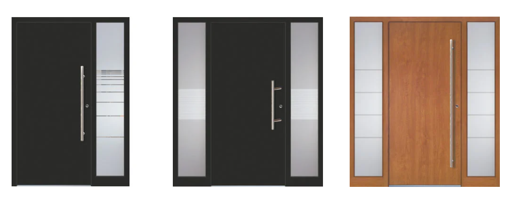 Poprzez harmonijne połączenie wypełnień drzwi z bocznymi naświetlami, które są wyposażone w eleganckie szyby piaskowane, można osiągnąć wspaniały efekt wizualny. Ta kombinacja tworzy niezwykłą kompozycję estetyczną, która przyciąga uwagę i nadaje drzwiom wyjątkowego charakteru. Dodatkowo, istnieje możliwość dostosowania wzoru na szybie poprzez piaskowanie, co pozwala na pełną personalizację według indywidualnych preferencji.