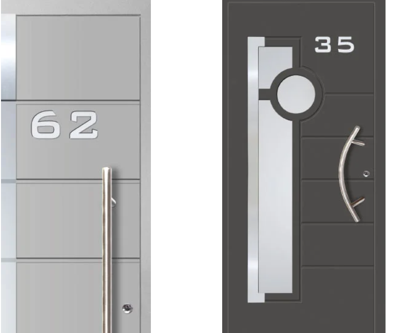 Dodatek do drzwi w postaci numerów domów jest zarówno praktycznym, jak i estetycznym elementem. Pełni on rolę zarówno ozdobną, jak i informacyjną, ułatwiając zlokalizowanie konkretnego mieszkania lub lokalu. Numery domów są precyzyjnie osadzane w powierzchni panelu drzwiowego i pokrywane wytrzymałą blachą aluminiową.
