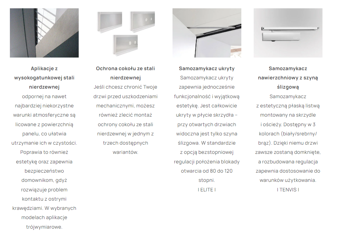 Dodatkowo, te elementy dostosowują się do różnych potrzeb użytkowników, zapewniając wyjątkową ochronę oraz estetyczny wygląd drzwi.