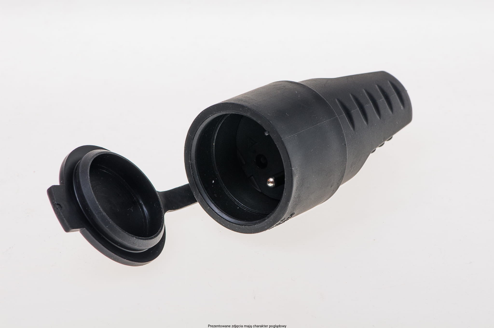 POLMARK Gniazdo gumowe IP44 z klapką z uziemieniem 16A, Czarny