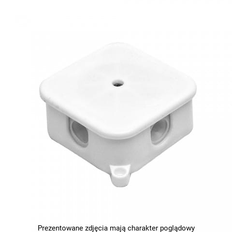 Pojedyńcza puszka przeznaczona do budowania instalacji elektrycznej natynkowej. Wykonana jest z tworzywa sztucznego w kolorze białym. Montowana na wkręty