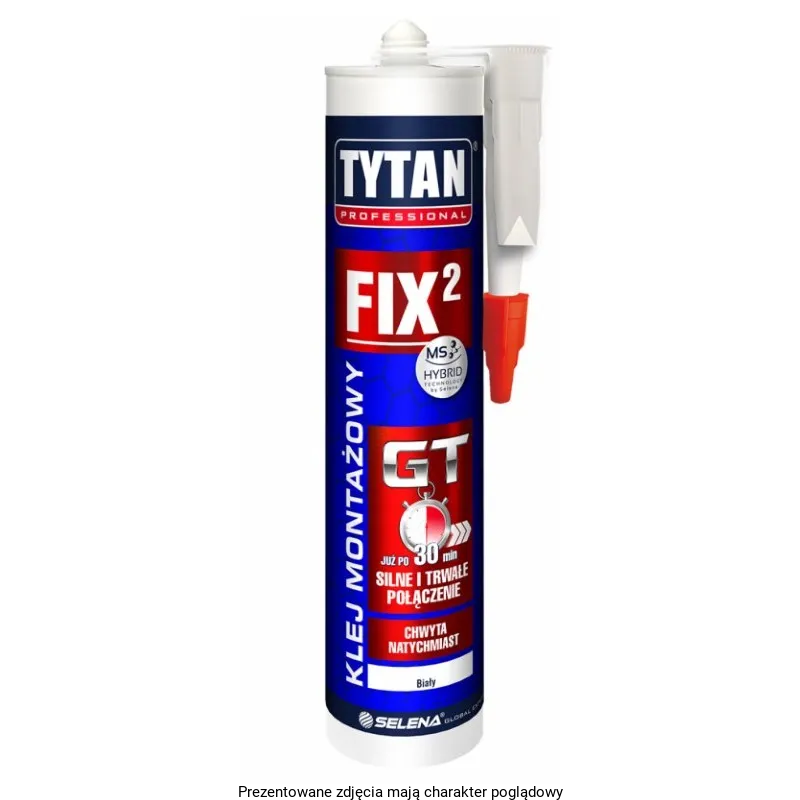 Klej montażowy Tytan Professional FIX² GT to produkt na bazie najnowszej generacji polimerów hybrydowych o szybkim chwycie początkowym i przyspieszonym czasie utwardzania. Tworzy bardzo wytrzymałe połączenie, które można obciążyć już po około 30 minutach, a pełną wytrzymałość osiąga już po około 3 godzinach. Powstała spoina doskonale tłumi wibracje, jest odporna na zmienne warunki atmosferyczne, promieniowanie UV i rozcieńczone chemikalia.