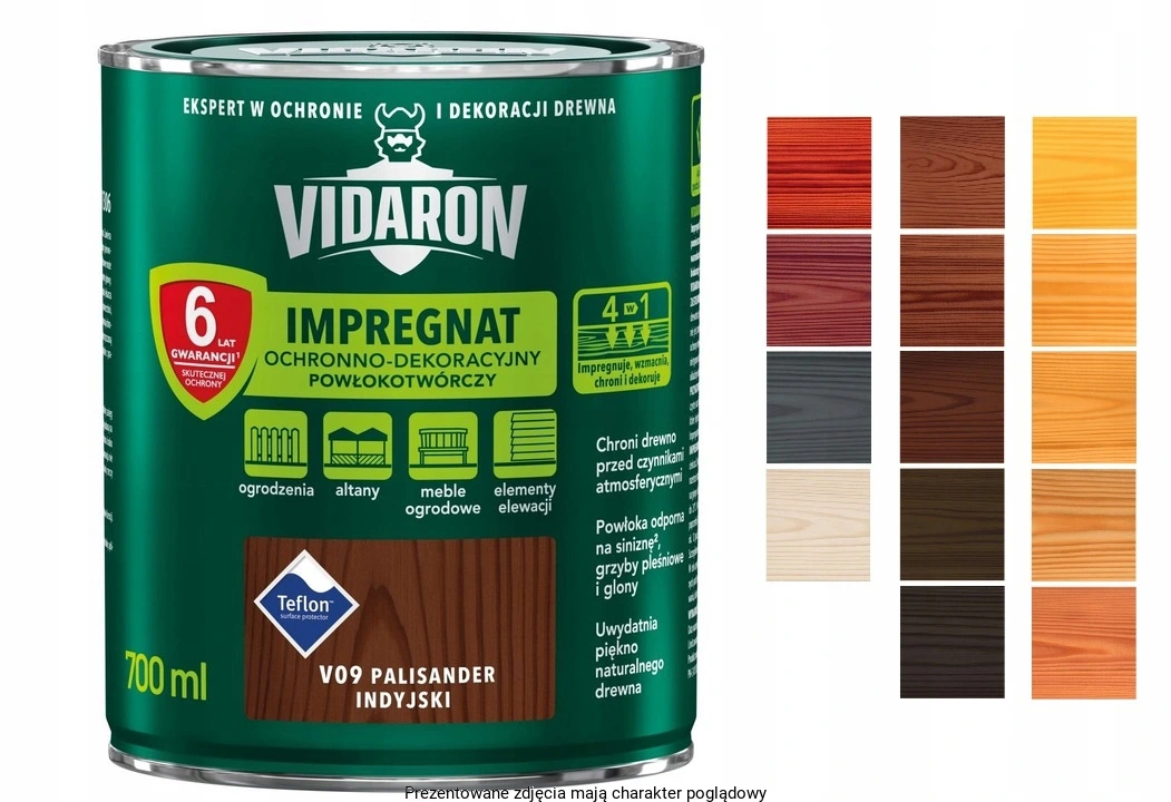 Dodatkowo tworzy na powierzchni drewna ochronną powłokę odporną na biokorozję - siniznę, grzyby pleśniowe oraz glony. W połączeniu z bezbarwnym Impregnatem Ochronnym VIDARON zapewnia pełną ochronę drewna.