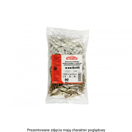 WKRĘT-MET Kołki uniwersalne 6,0 x 35 z wkrętem z łbem stożkowym PZ 3,5 x 45 (80szt)